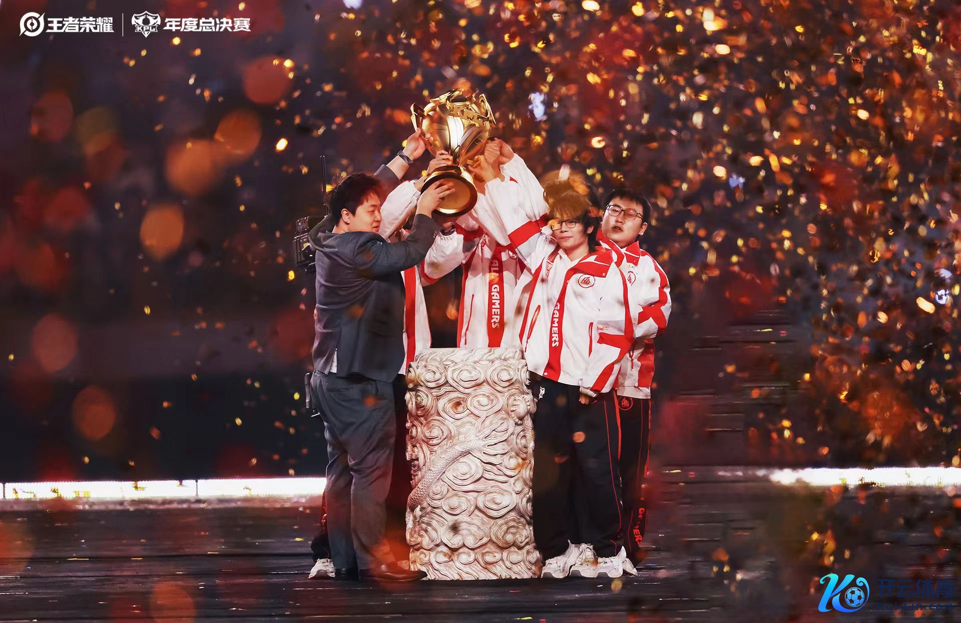跟着比赛限制,成王人AG超玩会的选手捧起圣龙杯的同期,金色的雨逐步洒满鸟巢全场。就像每一位如故在这里洒下热泪与嗜好的竞技前辈们相同,鸟巢与东谈主们共同见证攀高顶峰路上总共东谈主的热血与荣耀。